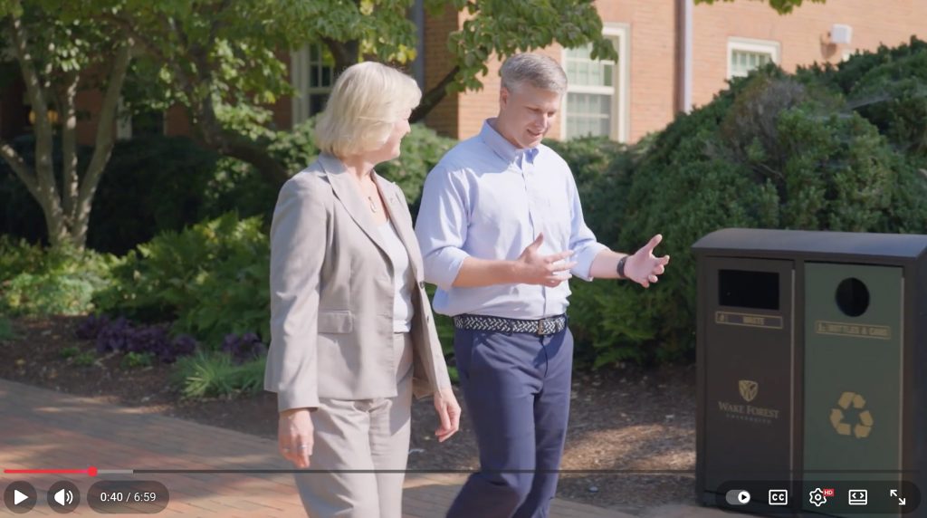 To celebrate our community of inquiry, President Wente invites faculty members to share their contributions and insights with the Wake Forest community by joining her on a “Walk with Wente,” a signature video series.