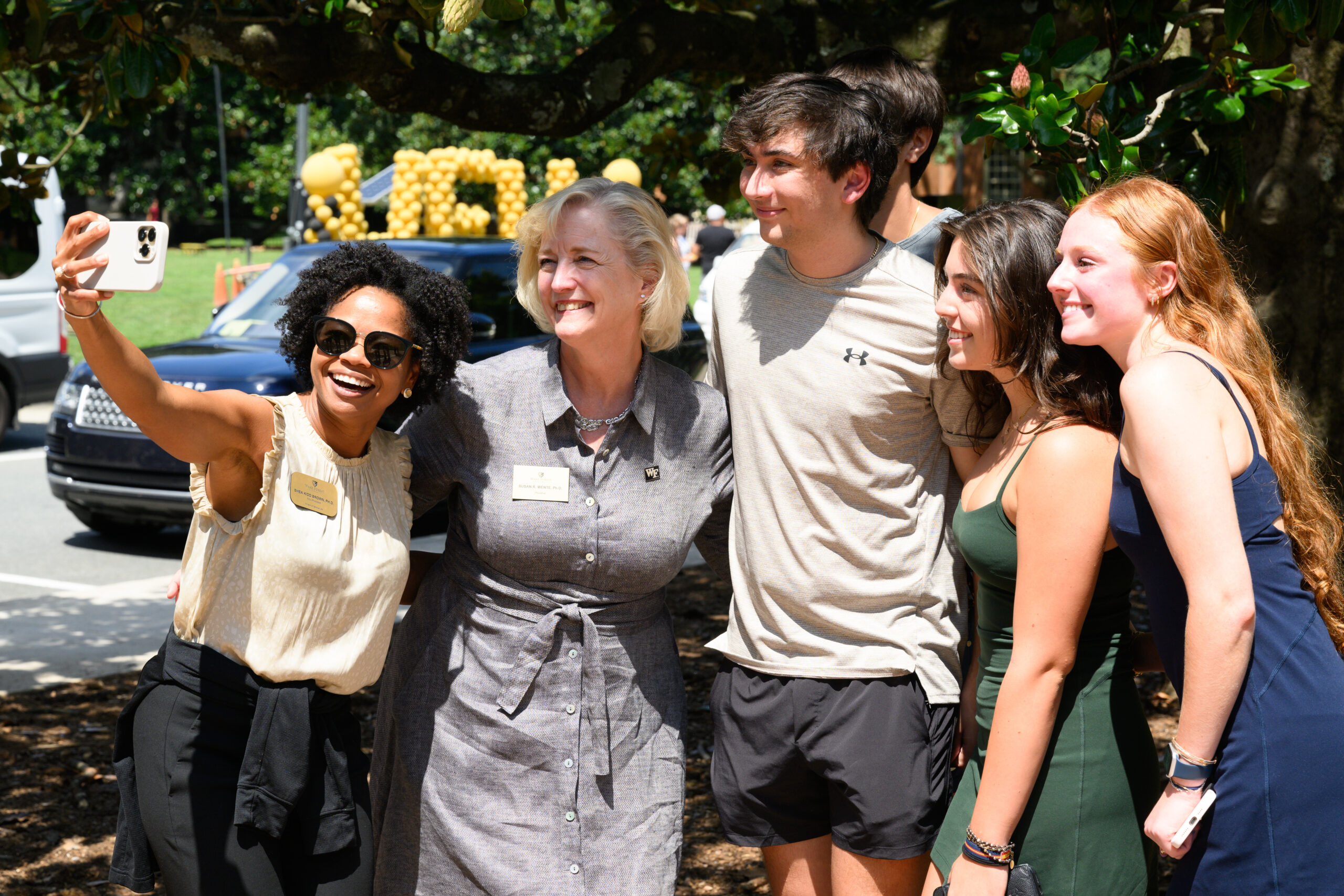 President Wente greets members of the Class of 2026 as they arrive on campus for the start of the 2022-23 academic year.
