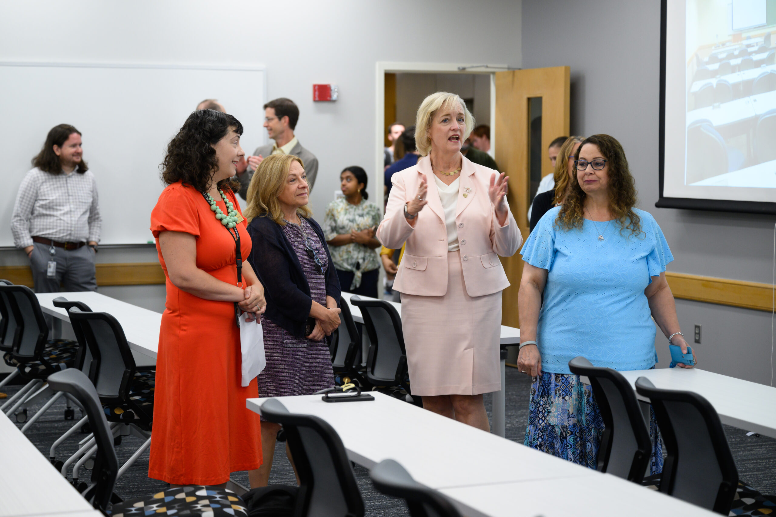 President Wente tours space impacted by an ambitious renovation project for academic and classroom spaces on the Reynolda campus.
