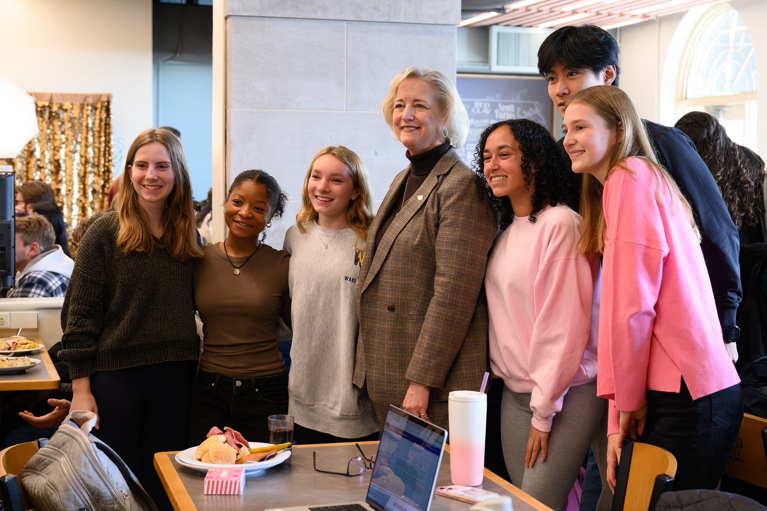 President Wente addresses Wake Forest University senior leadership and students at the Student Government Executive Team Installment at her home on Monday, April 21, 2025.