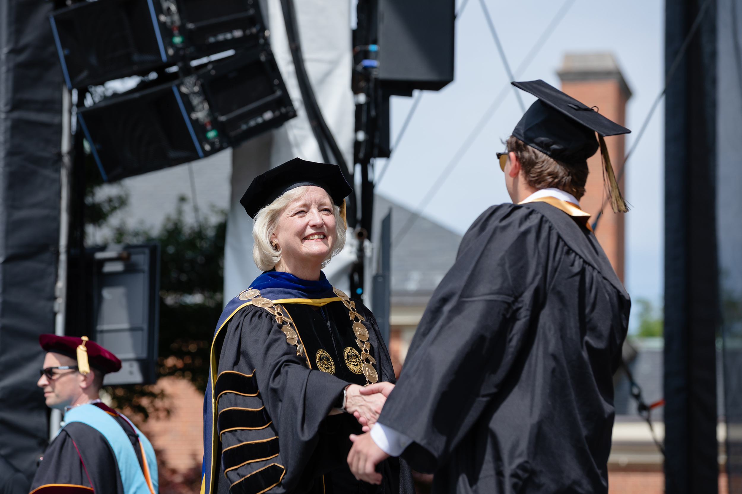 President Wente congratulated graduates at Commencement on May 15, 2023, telling them in her address: “My message for you is simple. … Actually, I only have three words that I want you to carry from this moment and take out into the world: You are ready.” Relive the 2023 Commencement here.